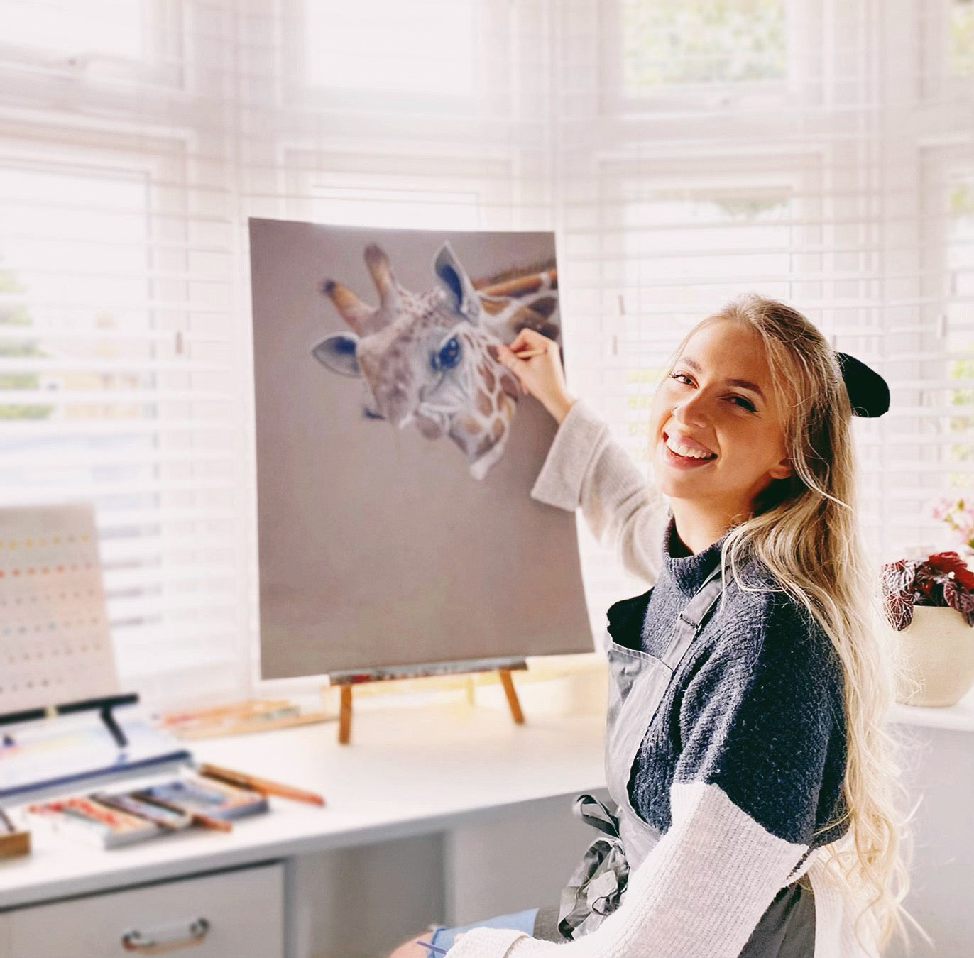 ¡Ey! Soy Paige, la artista residente más nueva del equipo. No recuerdo un momento en el que no estuviera creando: el arte siempre se fomentó en mi casa mientras crecía y yo sostenía un pincel antes de poder caminar. Mi padre, que también es artista, aprendió de mi difunto abuelo Sid, por lo que la creatividad viene de familia.